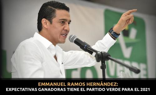 Las perspectivas del Partido Verde Ecologista de México para el 2021 son totalmente ganadoras, porque nadie que juega o compite para perder, y todo el equipo y la gente que se ha venido sumando a este proyecto, a esta familia, es con la intención de obtener los mejores resultados, y no solamente para el grupo sino para la ciudadanía en general, buscando que el sentido social sea lo primero dentro de los objetivos que tiene cualquier proyecto político, afirmó el presidente del Comité Directivo Estatal, Emmanuel Ramos Hernández.