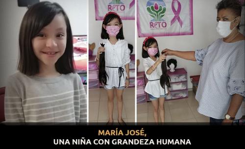 María José Coronado Valdivia es una pequeña de 8 añitos, ella es un ejemplo a seguir para mu-chas personas, de noble corazón y carácter valiente, María José se dejó crecer su cabello para poderlo donar en pro de aquellas mujeres que padecen cáncer.