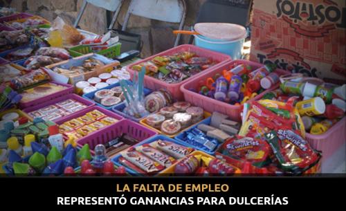 98% de los consumidores que se acercan a las dulcerías son personas que perdieron su empleo y colocaron un puesto de botanas, dulces y postres afuera de su casa.
