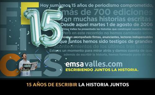 Por supuesto, agradecemos a nuestra plantilla laboral de periodistas administrativos y colaboradores, a los que han estado desde el inicio, a los que ya se fueron, a los que han creído y no han creído, a los que están y estarán, a ustedes, nuestra gratitud y reconocimiento por el esfuerzo conjunto de cada mañana al hacer de Emsavalles.com un medio confiable y siempre con la firmeza de llevar a usted la noticia puntual.