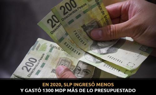 En 2020, San Luis Potosí formó parte del grupo de las 23 entidades federativas que gastaron más dinero del que presupuestaron y también se incluyó entre las únicas 6 que, pese al aumento de su gasto, ingresaron menos recursos.