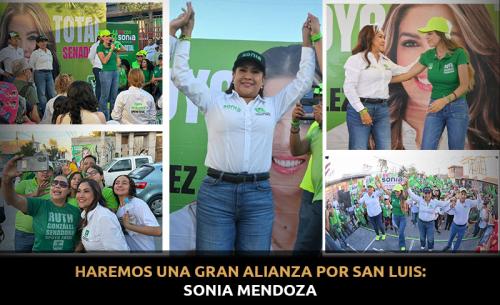 Ruth González Silva dijo "ahora sí, vamos a tener mucha presidenta municipal con Sonia Mendoza, próxima alcaldesa. De la mano de Sonia Mendoza haremos de San Luis la mejor ciudad capital de México".