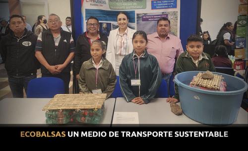 Los alumnos de la Escuela Leona Vicario de Tamazunchale, Francisco Aquino Isidro, Camila Benítez Fernández y Tania Yasmín Hernández Flores, con apoyo del director José Luis Hernández Santiago y asesorados por el maestro José Antonio López Hernández, realizaron el proyecto denominado ecobalsas, que es una propuesta innovadora de un medio de transporte sustentable, pues consiste en reciclar botellas de plástico, colocarlas en costales y amarrarlas con un mecate y otates para lograr el equilibrio necesario al navegar sobre el río.