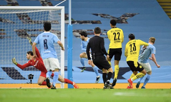 Y volvió a ser protagonista el colegiado, el rumano Ovidiu Hategan, unos minutos más tarde cuando anuló un gol a Bellingham por supuestamente robarle la pelota en falta a Ederson. No era el día del Dortmund hasta este momento y Haaland, incluso, falló un mano a mano. La sorpresa total. El noruego ganó bien por cuerpo a Ruben Dias, pero, desequilibrado, no pudo superar a Ederson. Foden se la devolvió y en un pase de la muerte tiró directo al muñeco. Perdonó más el City, con ocasiones para el propio Foden y De Bruyne, y lo terminaron pagando. A cinco minutos para el final, el Dortmund se sacó una combinación en tres cuartos que terminó con Haaland filtrando la pelota para que Reus, delante de Ederson, lograra el empate. Era un gran resultado para los alemanes, pero en el 90, Gundogan encontró a Foden dentro del área y el joven inglés, con la zurda, sentenció el partido, pero no la eliminatoria. Decidirá Dortmund en una semana. - Ficha técnica: 2 - Manchester City: Ederson; Cancelo, Dias, Stones, Walker; Rodri, Gundogan, De Bruyne; Mahrez, Foden y Silva (Jesús, m.59). 1 - Borussia Dortmund: Hitz; Guerreiro, Hummels, Akanji, Morey (Meunier, m.81); Dahoud (Delaney, m.81), Can, Bellingham; Reus, Haaland y Knauff (Reina, m,63). Goles: 1-0. De Bruyne, m.19, 1-1. Reus, m.84 y 2-1. Foden, m.90. Árbitro: Ovidiu Hategan (ROM) amonestó a Can (m.30) y Bellingham (m.37) por parte de los visitantes. Incidencias: Partido correspondiente a la ida de los cuartos de final de la Liga de Campeones disputado en el Etihad Stadium (Mánchester) a puerta cerrada.