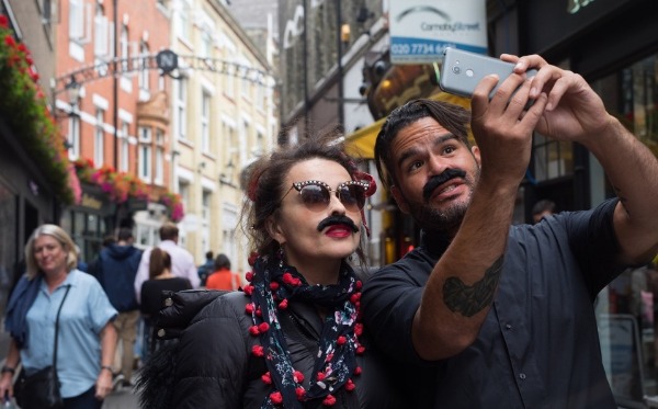 En Carnaby Street se pudo ver a algunos seguidores del líder de la banda Queen usando bigotes postizos y con el lema "Freddie por un día".