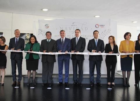 El gobernador Antonio Gali y el Presidente de la Junta de Coordinación Política de la Cámara Alta, Ricardo Monreal, inauguraron la exposición "Arte y Navidad de Puebla" en el Senado de la República, que permanecerá en este recinto del 8 al 16 de noviembre.