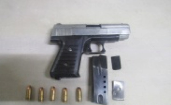 Al realizarle una inspección de seguridad, dentro las pertenecías de quien se identificó como Jorge R., de 32 años de edad, se le encontró un arma de fuego, abastecida con cinco cartuchos útiles.