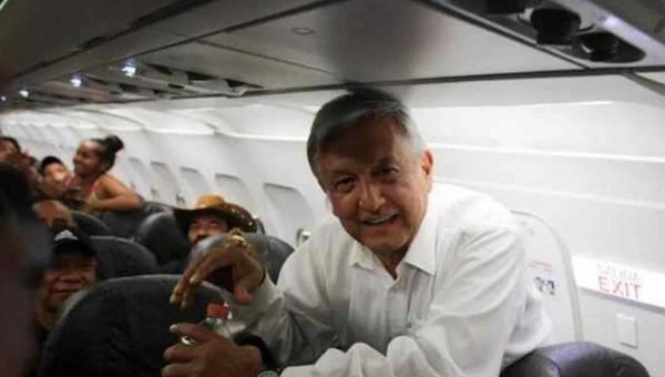 López Obrador llegó a las 10:20 horas a la Terminal 2, subió al avión, se tomó fotografías con algunos pasajeros y, al momento de tomar su asiento en la fila 13, y el piloto le hizo la singular petición.