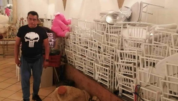 La prohibición de uso de salones de fiestas ha arrastrado a Gilberto a rematar mobiliario porque en su negocio "no entra ni un peso partido por la mitad"