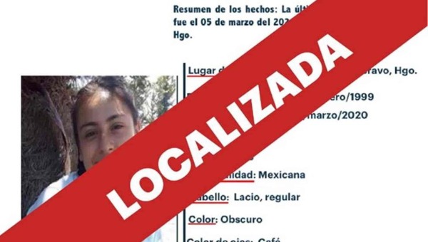La joven identificada como A.P.C.B. fue localizada luego de 21 semanas de haber desaparecido en Tulancingo, por lo que la Comisión de Búsqueda de Personas del Estado de Hidalgo (CBPEH) desactivó la ficha.