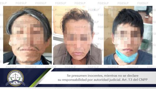 • Fueron detenidos dos hombres y una mujer, por personal operativo de la Fiscalía General del Estado de San Luis Potosí (FGESLP), por su presunta participación en el delito de robo calificado en agravio de una empresa en la ciudad Capital.