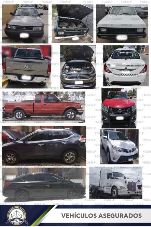 • La Fiscalía General del Estado de San Luis Potosí (FGESLP), a través de elementos de la Policía Investigadora (PDI), logró recuperar once vehículos que mantenían un reporte de robo vigente en la Capital potosina y uno en el municipio de Villa de Zaragoza.