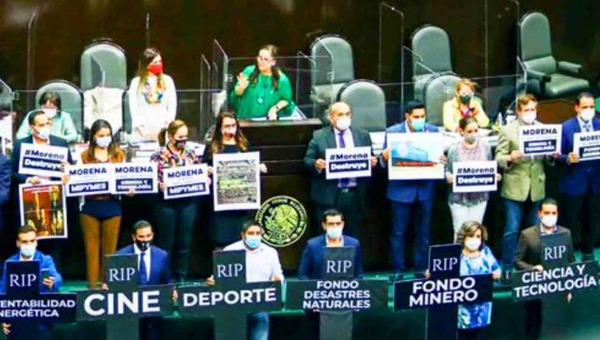 Hace una semana se llevó a cabo una sesión en la Cámara de Diputados, que de acuerdo con El Universal duró 19 horas. Ahí los diputados federales de Morena celebraron el dictamen para eliminar los fondos y fideicomisos, son 109 en total, entre ellos el Fondo de Desastres Naturales (Fonden). Además de recursos para el cine, el deporte, la ciencia, la tecnología, fondo para los periodistas, defensores de los derechos humanos y más.