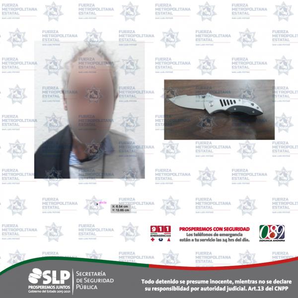 En el primer caso, una persona identificada como Raoul D., de 57 años de edad, fue detenido en las calles Juan del Jarro y Avenida Santiago, en la colonia Los Álamos, por la presunta portación de una navaja.