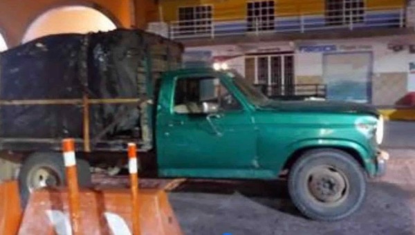 La camioneta de tres y media toneladas, de color verde, fue registrada y localizaron cuatro contenedores de más de mil litros de gasolina en cada uno.