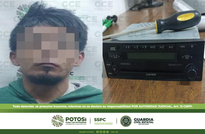 Al momento de su detención se le aseguró un autoestéreo perteneciente a un vehículo línea Ibiza, modelo 2005.