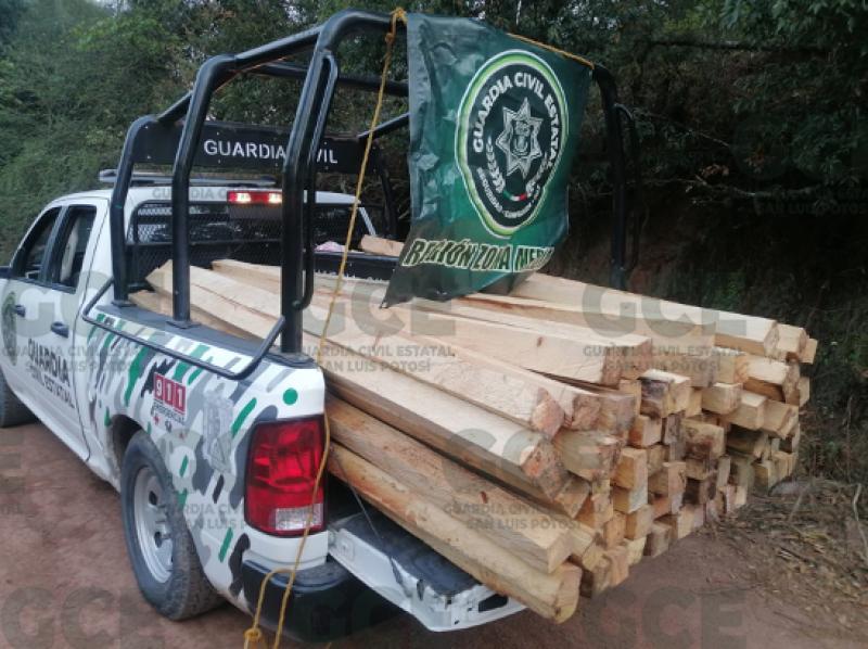 Elementos de las fuerzas del orden de la Guardia Civil Estatal en coordinación con personal de la Procuraduría Federal de Protección al Ambiente (Profepa), incursionaron en la sierra ubicada entre las localidades Tanque de San Juan y Cañada Grande en el municipio de Rioverde para dar seguimiento a una denuncia de corte y extracción de recursos forestales maderables.