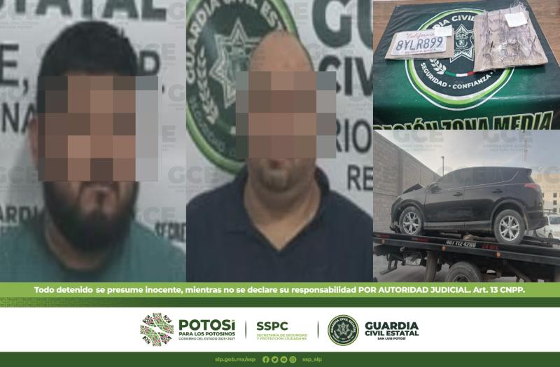 Al consultar el estatus del automóvil en el que viajaban dichas personas, resultó con reporte de robo del año 2022 en el municipio de Tamazunchale y se estableció que Jairo de 37 años de edad y Víctor de 26 años, presumiblemente forman parte de una célula criminal generadora de violencia en la zona Media. Ambos quedaron a disposición de la Fiscalía General del Estado junto con la unidad asegurada y los artefactos metálicos.