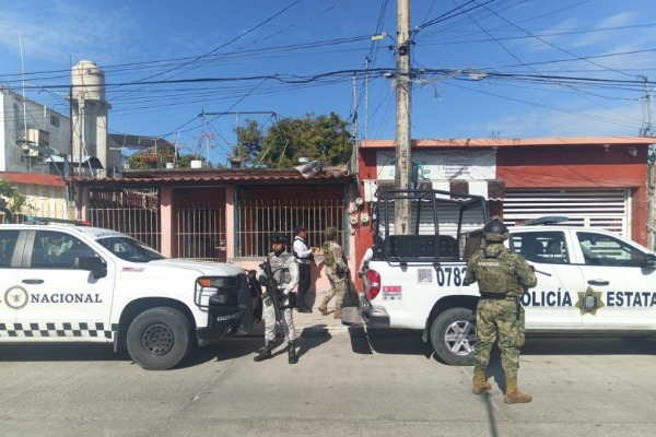Durante el operativo, personal naval proporcionó apoyo de seguridad perimetral a la Fiscalía General del Estado para retirar cuatro cámaras de video vigilancia en las colonias Manigua, Caracol y 23 de Julio.