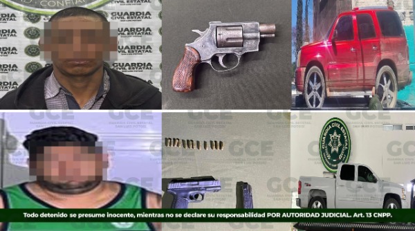 - Autoridades detuvieron a dos personas y aseguraron armas de fuego y vehículos en Salinas y Ciudad Valles.