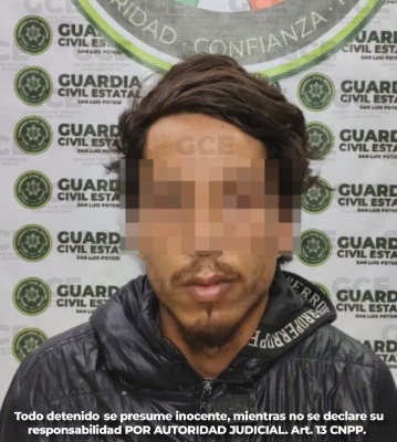Como parte de las acciones operativas permanentes en las cuatro regiones y las labores de vigilancia, la Guardia Civil Estatal (GCE) detuvo en flagrancia a Francisco "N", de 28 años de edad, luego de que el individuo ingresara a una tienda de conveniencia ubicada en el centro de la capital potosina y presuntamente despojara a la cajera de una bolsa que contenía aproximadamente 500 pesos.