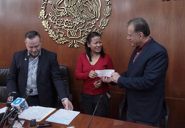 A nombre de la LXI Legislatura del Congreso del Estado, el diputado Héctor Mendizábal Pérez, presidente de la Junta de Coordinación Política (JUCOPO), hizo entrega de los cheques restantes a las delegaciones de la Cruz Roja en el interior del estado, como parte del donativo para apoyar a los cuerpos de emergencia.