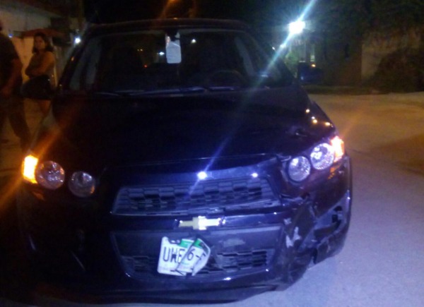 Supuestamente transitaba por calle Álamo, pero lo correteó un perro y al tratar de escapar chocó contra un automóvil Chevrolet color gris, de modelo reciente.
