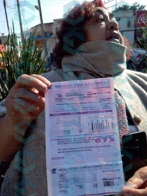 Mencionó que su recibo le llegó por 273 pesos cuando normalmente paga por dos recibos 162 pesos, por lo que no está dispuesta a pagar esa cantidad porque no tiene dinero, Antonia Landaverde es vecina de la calle Roble en la colonia 18 de Marzo y dijo que a ninguno de sus vecinos les ha pasado algo similar, solo a ella.