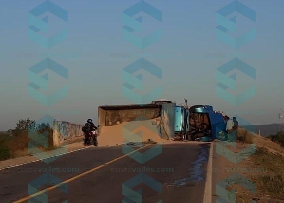 El camión se volcó y se encuentran obstruidos los dos carriles de circulación.