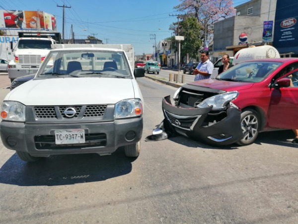 • Un vehículo marca Nissan color guinda, de modelo reciente, se impactó contra una camioneta Nissan blanca, tipo estaquitas, en el cruce del bulevar Lázaro Cárdenas y la calle Madero.