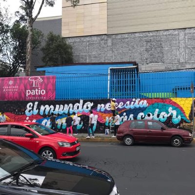 En la fotografía se puede observar como cada uno de los participantes añaden al lienzo pinceladas de diferentes colores, la acción se realizó en una de las bardas del jardín de niños Ana Frank ubicado en el barrio de San Ángel de la Ciudad de México, en su elaboración participaron niños de la institución educativa quienes plasmaron sus manos en la barda.