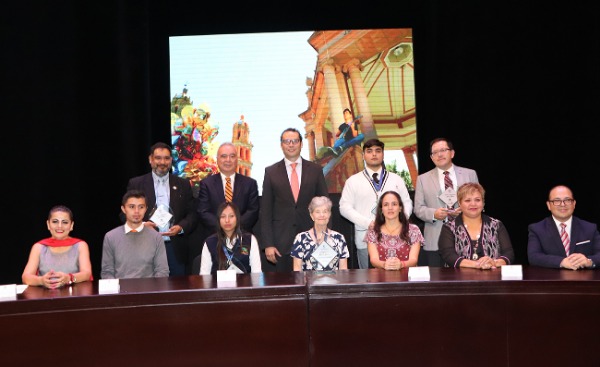 Luego de dirigirse a los jóvenes estudiantes galardonados y del auditorio, el mandatario municipal dedicó las palabras a una mujer potosina que ha entregado su vida a servir al prójimo, de la que lleva su nombre la presea "Magdalena María Derbez" y que estaba ahí presente acompañada por sus familiares.