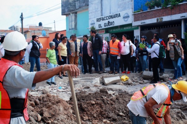 La antigüedad de los drenajes en este sector alcanza los 40 años, por ello se hizo la reposición de varios tramos, en la primera etapa se colocaron 90 metros de tubería de 12" en la línea del drenaje.