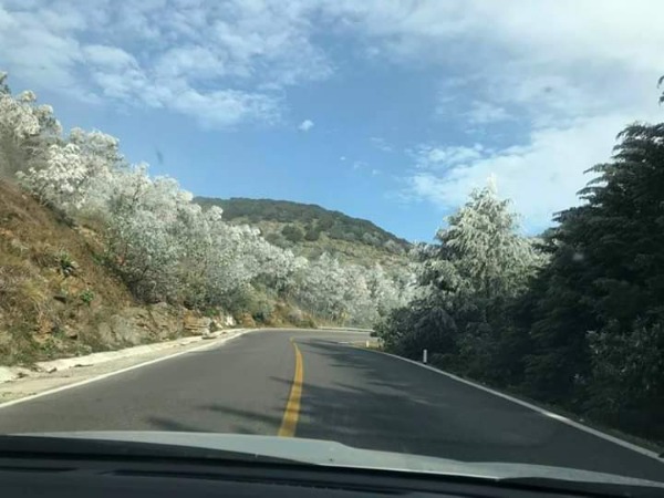 A primeras horas de hoy jueves 27 de febrero del 2020 automovilistas apreciaron que sobre la carretera federal 70 a la altura de El Valle de los Fantasmas a pocos kilómetros a la capital potosina se pudo apreciar qué los árboles amanecieron nevados debido a las bajas temperaturas registradas durante la madrugada donde se preveía un descenso de temperatura de -2 grados centígrados.
