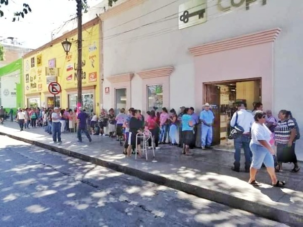 A pesar de la exhaustiva campaña por parte del gobierno para difundir las medidas de prevención como la sana distancia continúan las conglomeraciones de personas a las afueras de bancos negocios principalmente en el centro de Rioverde.