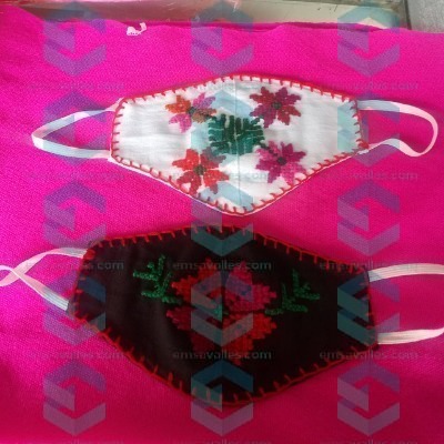 Rosy Aguilar vendedora de artesanías dijo que como ahorita se están usando mucho los cubrebocas decidieron ellos realizarlos con tela de manta ya que es fresca y decorarlos con bordado típico de la región (bordado tének)