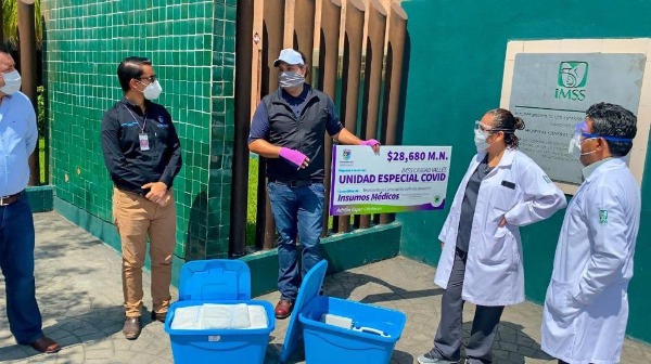 Se entregaron 70 oxímetros, laringoscopios y 150 overoles médicos para apoyar el área de limpieza y camilleros; para el mes de agosto se donarán dos aires acondicionados portátiles para esta Unidad COVID del IMSS.