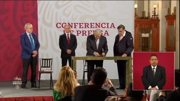 Previo a estampar su rúbrica, Andrés Manuel López Obrador dio lectura al documento en el que establece los argumentos que agraviaron al pueblo de México y que fundamentan este proceder.
