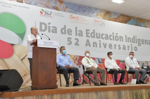 Con la participación de docentes de las etnias Tének, Náhuatl y Xi’uiy en un evento que se transmitió a través de internet, el Gobernador del Estado, Juan Manuel Carreras López, conmemoró el LII aniversario del Día de la Educación Indígena en San Luis Potosí, donde destacó programas ampliados o creados a favor de alumnos, alumnas y docentes del sistema bilingüe, así como la distribución de 116 mil 415 uniformes, 175 mil 568 paquetes de útiles escolares y, a través del DIF Estatal, la entrega de 148 mil 400 paquetes alimentarios en lo que va de la administración.