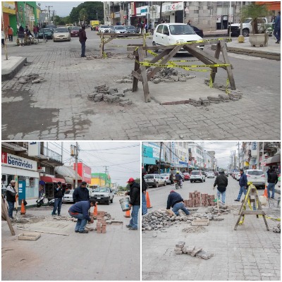 La Dirección de Obras Públicas lleva a cabo el cambio de adoquín en la calle Hidalgo, como parte de su programa de mantenimiento, a una de las principales arterias de la zona centro de Ciudad Valles.