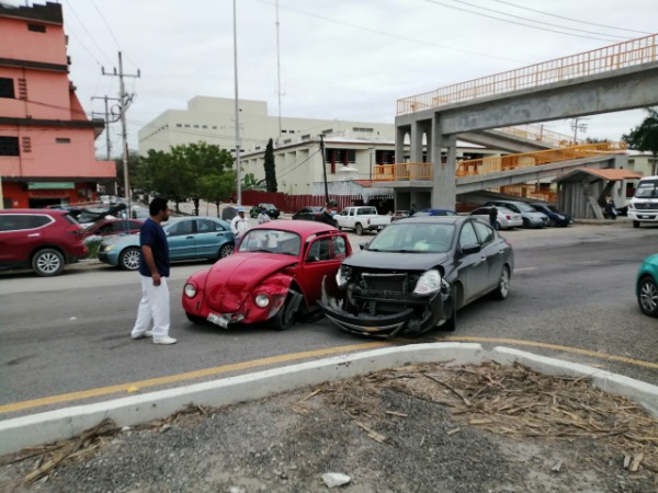 Un vehículo marca Nissan Versa color gris, chocó contra un "vocho" color rojo, en la carretera federal Valles-Tamazunchale, frente al Hospital General.