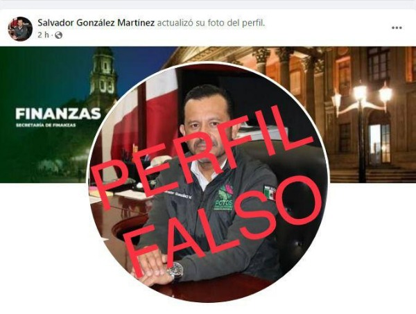 • La Secretaría de Finanzas (Sefin), informó que fue creado un perfil falso en la red social Facebook, del titular de la dependencia, Salvador González Martínez, a través del cual han intentado contactar a las y los legisladores potosinos.