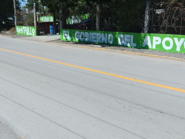 Para recibir al gobernador, algunos vecinos del lugar han pintado sus bardas con mensajes de agradecimiento por los apoyos recibidos, mientras que otros vecinos piden un mayor apoyo a las personas de escasos recursos.