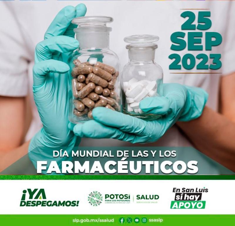 En los Servicios de Salud de San Luis Potosí, se cuenta con 194 Químicos Farmacéuticos laborando en las diferentes Unidades de Salud, este año el lema elegido por la Federación Internacional Farmacéutica (FIP) para la celebración es: "Fortaleciendo los sistemas sanitarios con los farmacéuticos".