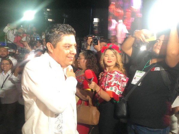 En el escenario, que contaba con una gran pantalla luminosa, la música se detuvo y la presentación de algunas de las personalidades más importantes se acompañó con el sonido de una batucada. Luego, el sonido se desvaneció para permitir que el público aplaudiera al gobernador y a su familia, marcando un inicio para el evento.