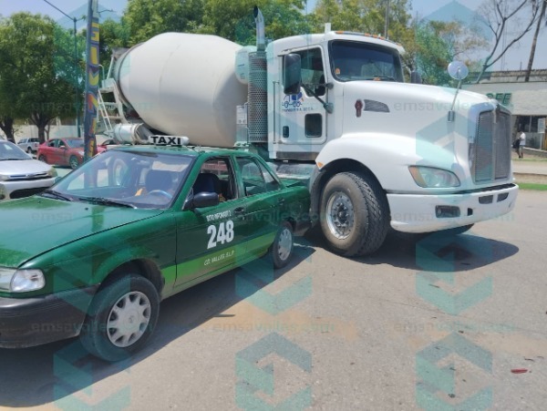 El incidente involucró a un camión revolvedora de cemento y un taxi identificado como el número 248 del sitio Infonavit 2.
