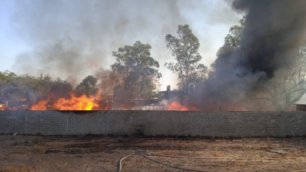 Participa la Delegación de Villa de Pozos en el combate al incendio en empresa tarimera