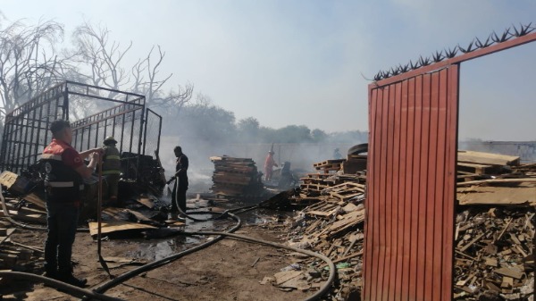 • Aproximadamente a las 07:35 horas de este miércoles se reportó a la Unidad de Rescate y Salvamento de la Delegación de Villa de Pozos el incendio en el interior de una empresa dedicada a la fabricación de tarimas de madera, ubicada en las calles de Cancún y Callejón de los Tovares, en la colonia Los Olivos, en esta demarcación.