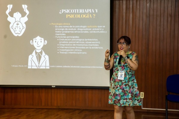 En la conferencia titulada "¿Qué es la psicología?", dirigida a estudiantes universitarios, la Mtra. Lourdes Regina Velázquez Pineda invitó a reflexionar sobre si el estudio de la mente y el comportamiento humano debe considerarse una disciplina o una ciencia. "Existen argumentos en ambas posturas. Analizamos la discusión constante que ha surgido a lo largo del tiempo, influida por diversas teorías y pensadores, lo que ha generado distintas concepciones sobre su objeto de estudio. Finalmente, abordamos una de sus aplicaciones más conocidas: el enfoque clínico y su vínculo con la psicoterapia, lo que destaca las diferencias entre ambos conceptos", señaló.