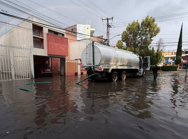 Con uso de vactor y una bomba extractora, se trabaja en la calle Santander en la colonia San Lorenzo, para disminuir el nivel de agua; asimismo, agentes de Seguridad Vial ofrecen traslados a habitantes y trabajadores en la zona de Privadas de la Hacienda, de la entrada hasta sus hogares.